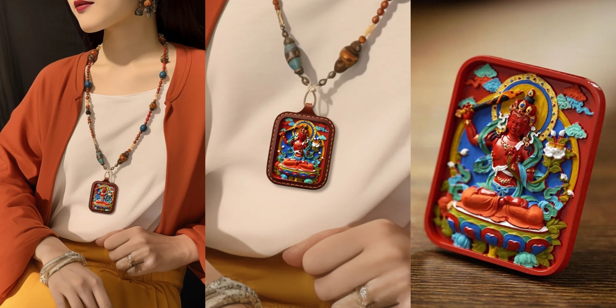Experience the spiritual journey of Tibet with QiLing Aura's Thangka Jewelry.