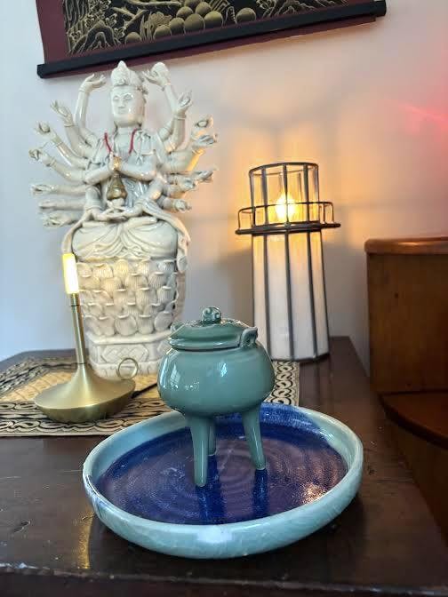 Discover the essence of ancient Yue Kiln craftsmanship with our Zen Three-legged Incense Burner.